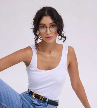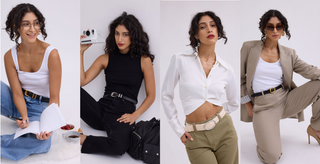 Another necessary set of staples are the tops: a white baby tee, loosely fitted, a set of neutral colored tanks under the loose blazer or sweater, and a sleeveless turtleneck. Feel free to find colored options in all of these to differentiate your outfits and accessory options! It would definitely benefit you to have a few neckline variations too.