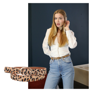 Leopard is back and trending among wholesalers, retailers, and designers in 2024. This pattern was prominently featured at MAGIC Vegas, with Leopard Print Skinny Belt—a skinny light leopard print belt with a gold curved square buckle—being one of our top sellers. While some buyers chose thicker belts, the trend is shifting towards skinnier options for their versatility and minimalist appeal.