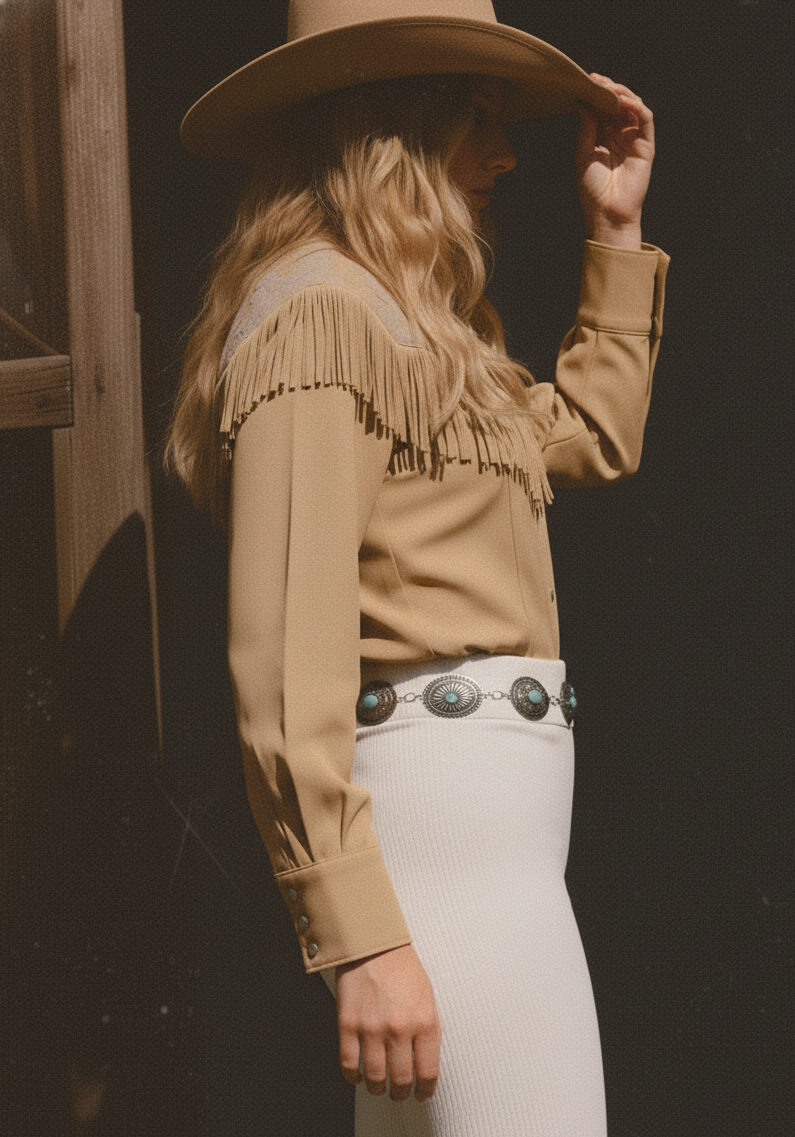 This vintage silver concho chain belt with center turquoise stones is a must have western staple! Made of 8 classic oval conchos adjoined with a sturdy chain and a smaller concho at the end of the belt, this western silver turquoise concho chain belt is stylish and durable. The antique silver conchos are engraved with intricate patterns around the center turquoise stone, making it the perfect belt to express your western and vintage style. This boutique favorite concho chain belt can be creatively styled with a pair of jeans, over your dress, or as a waist belt.