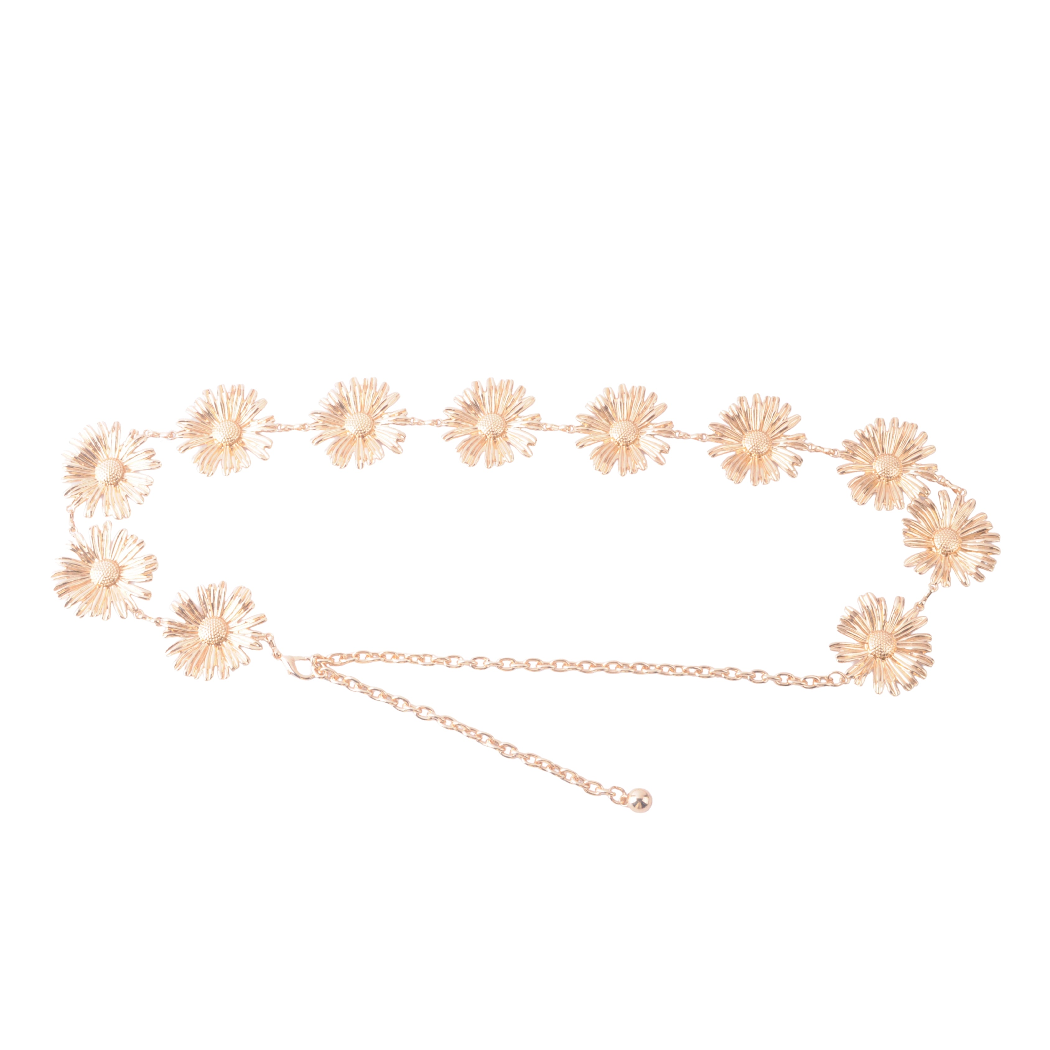 Add shine and sophistication with the Gold Daisy Chain Belt, a feminine and fun accessory that blends elegance with modern glam. Featuring glossy gold daisy links, this eye-catching belt instantly elevates any outfit (and makes it summery!) —from casual denim to chic evening looks.