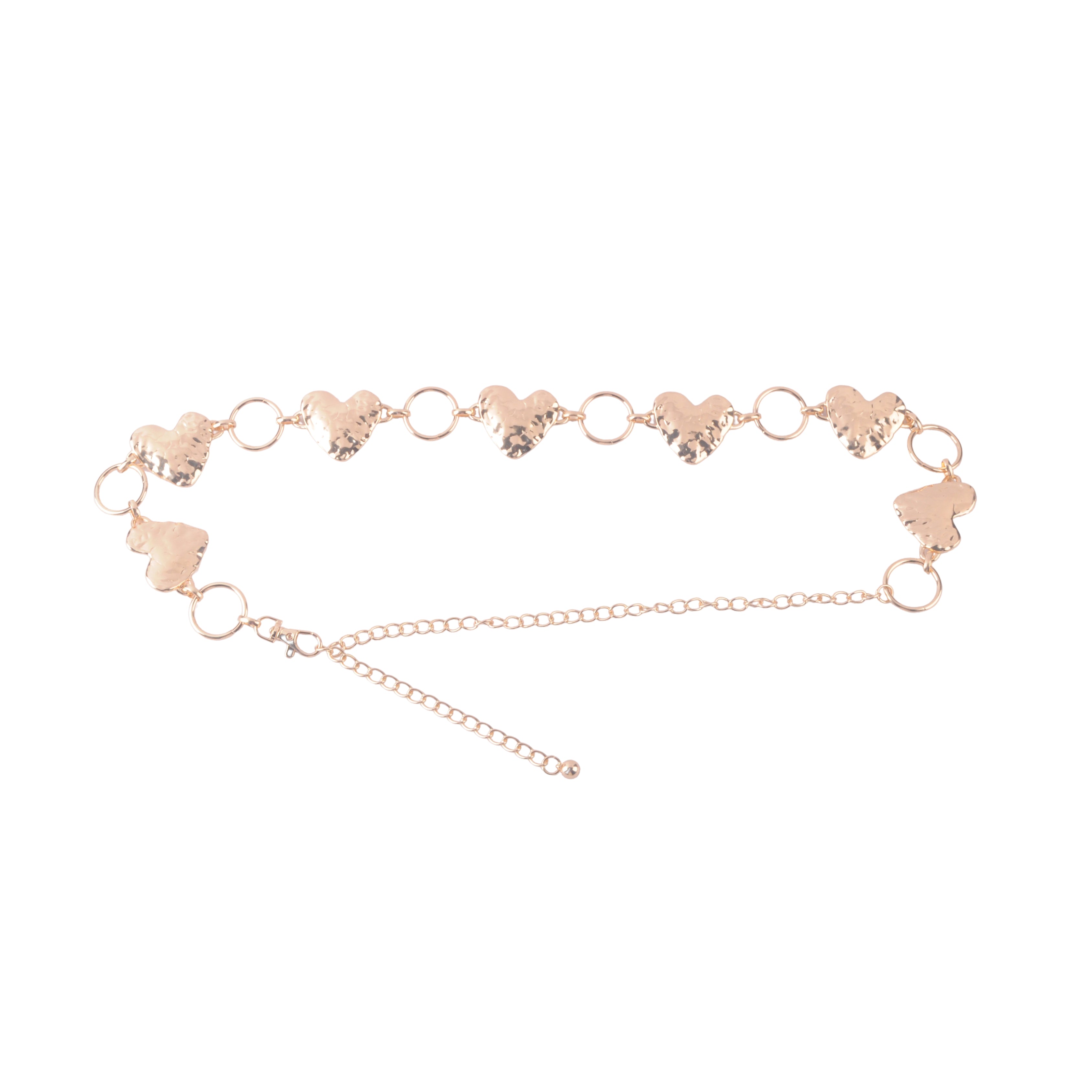 Featuring oversized heart-shaped rings with a natural hammered finish, this statement belt brings effortless charm to any look. The adjustable chain design makes it easy to wear over dresses, denim, or layered knits. Perfect for adding a vintage-inspired accent to your outfit, day or night.