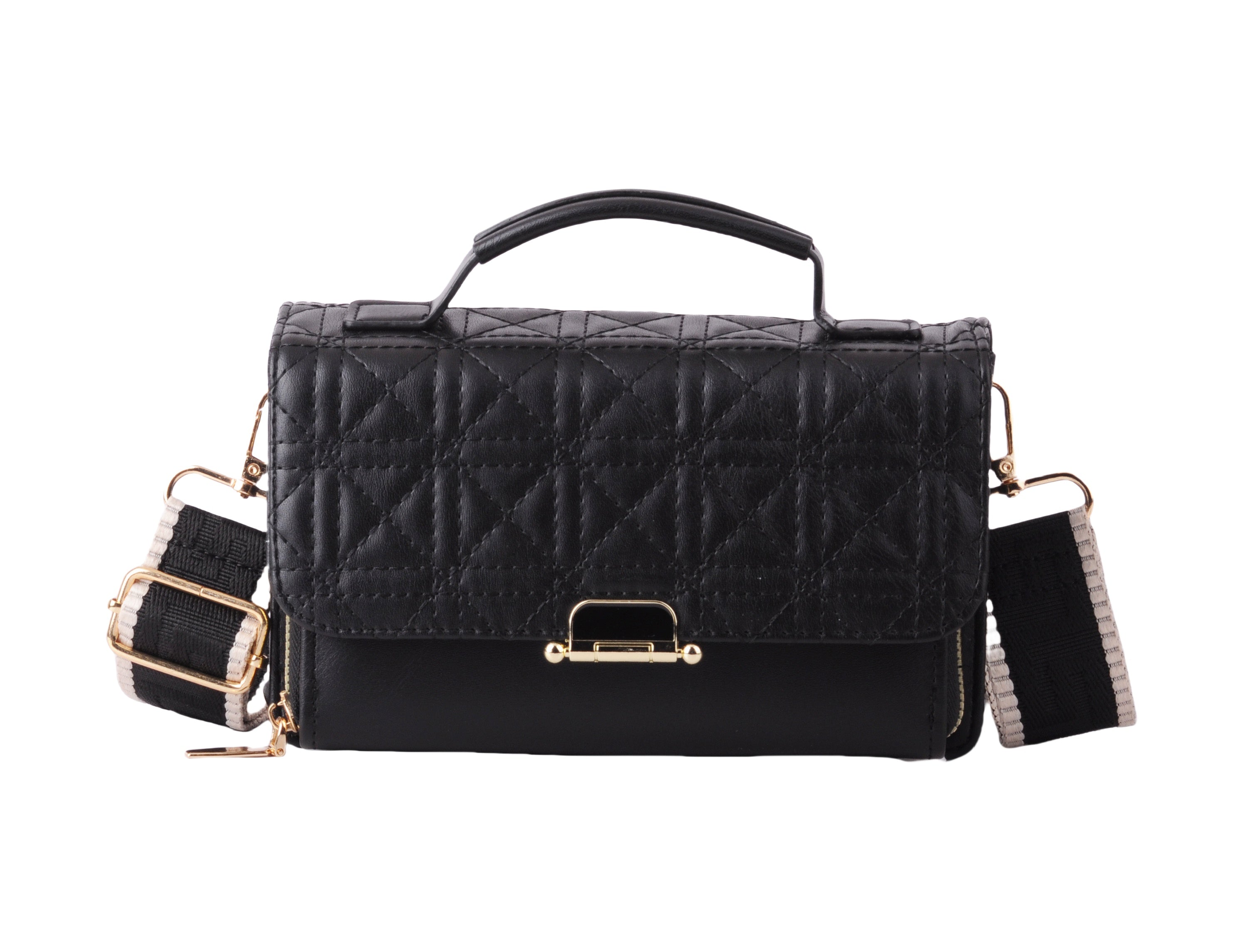 Discover the perfect blend of style and functionality with our Quilted Satchel Bag, designed for the modern fashionista. Featuring a luxurious quilted pattern, this bag exudes sophistication while offering ample space for all your essentials. The matching web strap provides a comfortable and adjustable fit, while the sturdy top handle allows for easy carrying, adding a chic touch to any outfit.