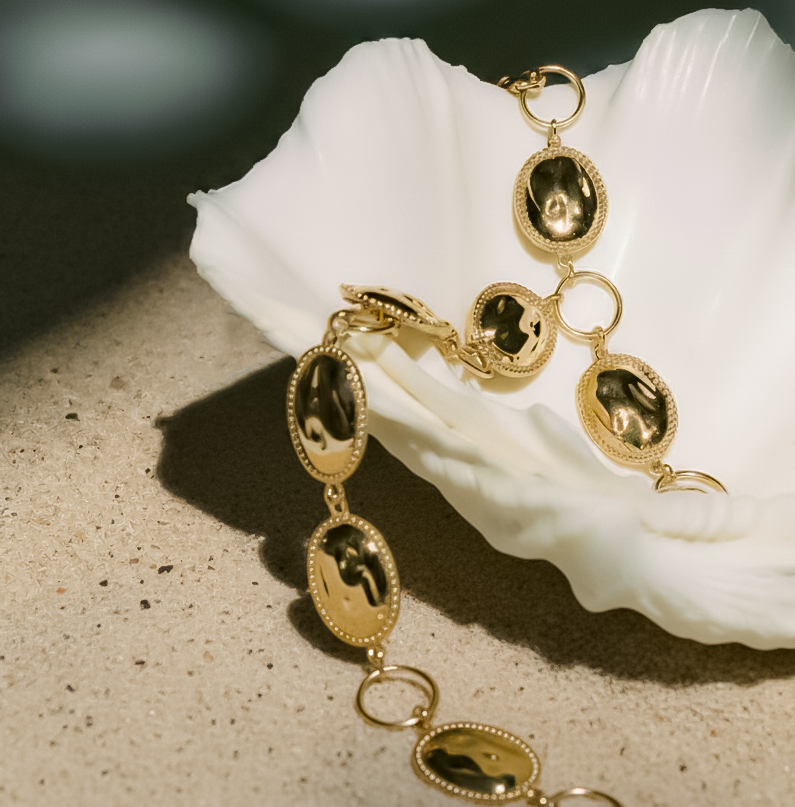 Elevate your look with this Brushed Gold Pebble Chain Belt, designed with smooth circular links that create a sleek, sculptural silhouette. The brushed gold finish adds a modern, understated shine, while the pebble-textured details bring depth and elegance. Perfect for styling over dresses, blazers, or high-waisted pants, this versatile accessory adds a touch of effortless sophistication to any outfit. A must-have statement belt for those who love timeless style with a contemporary edge.